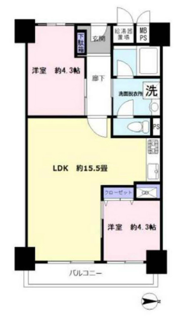 LDK15.5畳 洋室4.3畳 洋室4.3畳 |