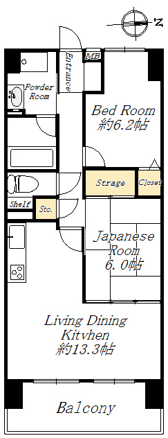 LDK13.3畳 和室6.0畳 洋室6.2畳 |