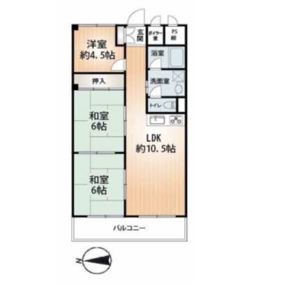 LDK10.5畳 和室6畳 和室6畳 洋室4.5畳 |
