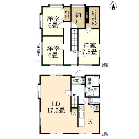 間取内容 LDK17.5畳   洋室7.5畳   洋室6.0畳   洋室6.0畳