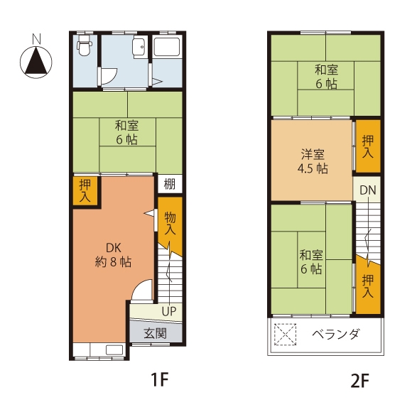 DK8畳 和室6畳 和室6畳 洋室4.5畳 和室6畳 |