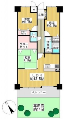 LDK13.5畳 和室4.5畳 洋室5.1畳 洋室5.2畳 |