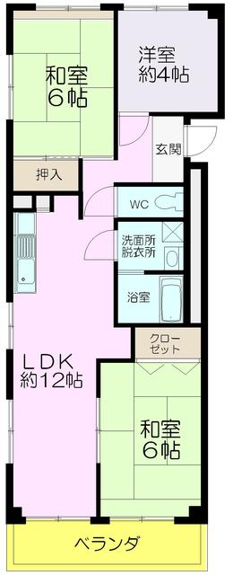 LDK12畳 和室6畳 和室6畳 洋室4畳 |