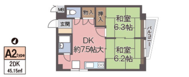DK7.5畳 和室6.3畳 和室6.2畳 |