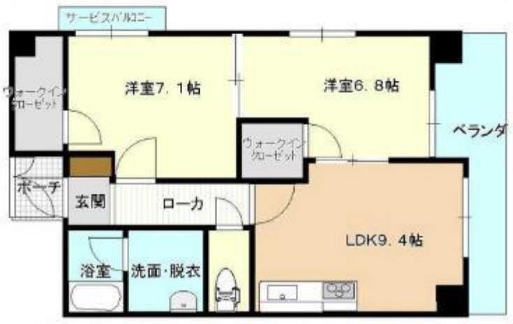 間取内容 LDK9.4畳   洋室7.1畳   洋室6.8畳