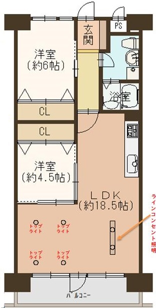 LDK18.5畳 洋室6.0畳 洋室4.5畳 |