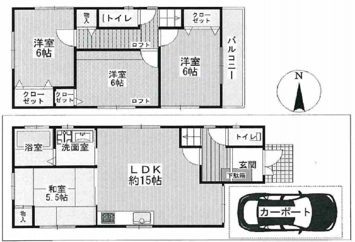 間取内容 LDK15畳   和室5.5畳   洋室6畳   洋室6畳   洋室6畳