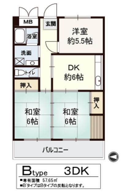 DK6畳 和室6畳 和室6畳 洋室5.5畳 |