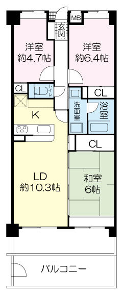 間取内容 LDK10.3畳   和室6畳   洋室4.7畳   洋室6.4畳