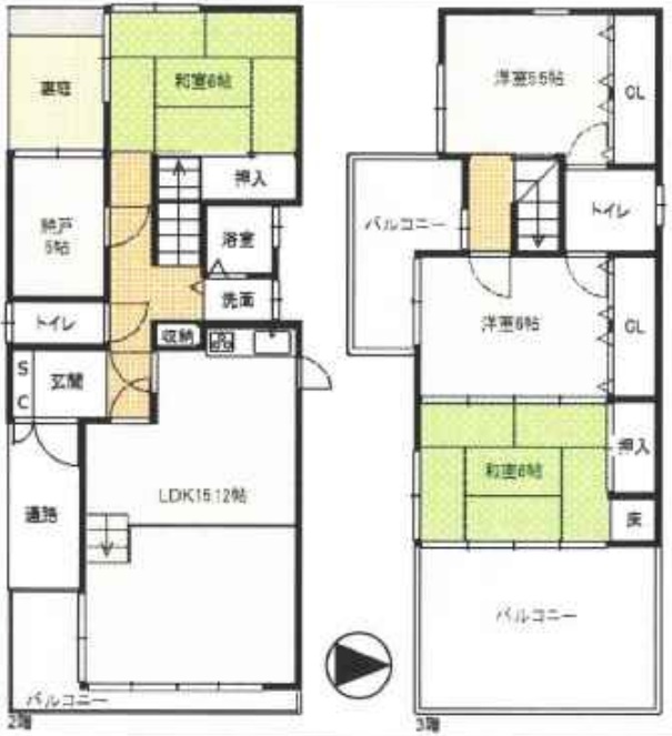 LDK15.12畳 和室6畳 和室6畳 洋室6畳 洋室5.5畳 |