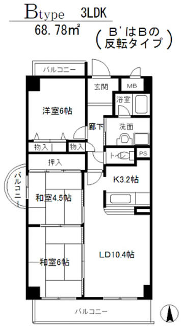 間取内容 LD10.4畳   K3.2畳   和室6畳   和室4.5畳   洋室6畳