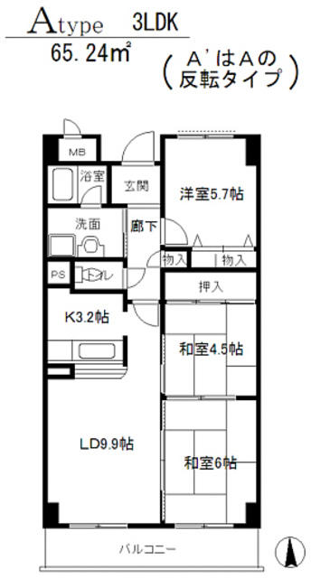 LD9.9畳 K3.2畳 和室6畳 和室4.5畳 洋室5.7畳 |