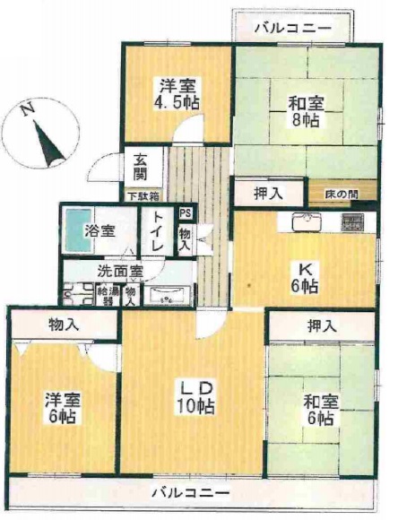 間取内容 LD10畳   K6畳   和室6畳   和室8畳   洋室6畳   洋室4.5畳