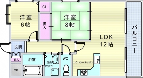 LDK 和室8畳 洋室6畳 |
