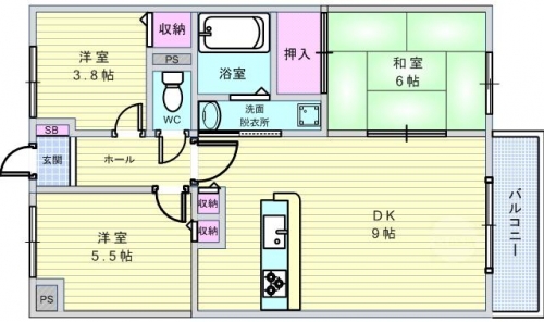間取内容 LDK9畳   和室6畳   洋室5.5畳   洋室3.8畳