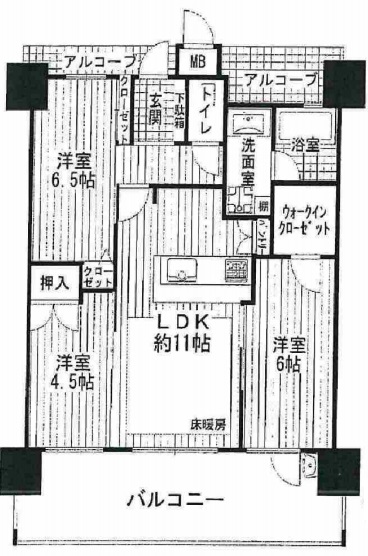 LDK11畳 洋室6.5畳 洋室6畳 洋室4.5畳 |