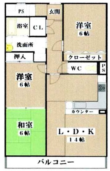 LDK14畳 和室6畳 洋室6畳 洋室6畳 |