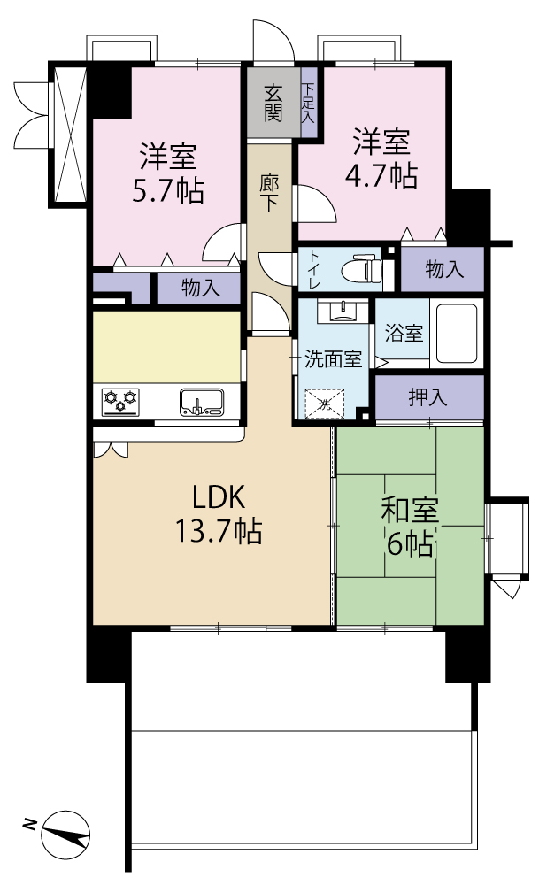 | 管理形態 | 全部委託 管理人日勤 管理組合有 | ||