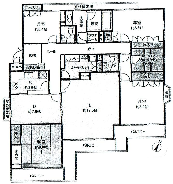 L17.6畳 D7.9畳 K3.9畳 和室8.0畳 洋室6.4畳 洋室8.6畳 洋室8.4畳 S |