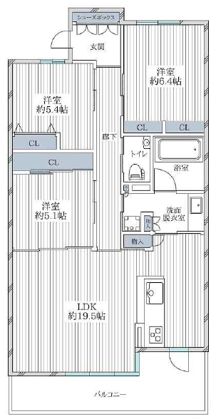 LDK19.5畳 洋室5.1畳 洋室5.4畳 洋室6.4畳 |