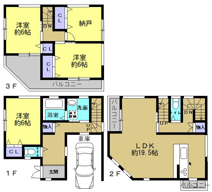 間取内容 LDK19.5畳   洋室6畳   洋室6畳   洋室6畳   S