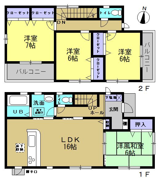 LDK16畳 和室6畳 洋室7畳 洋室6畳 洋室6畳 |