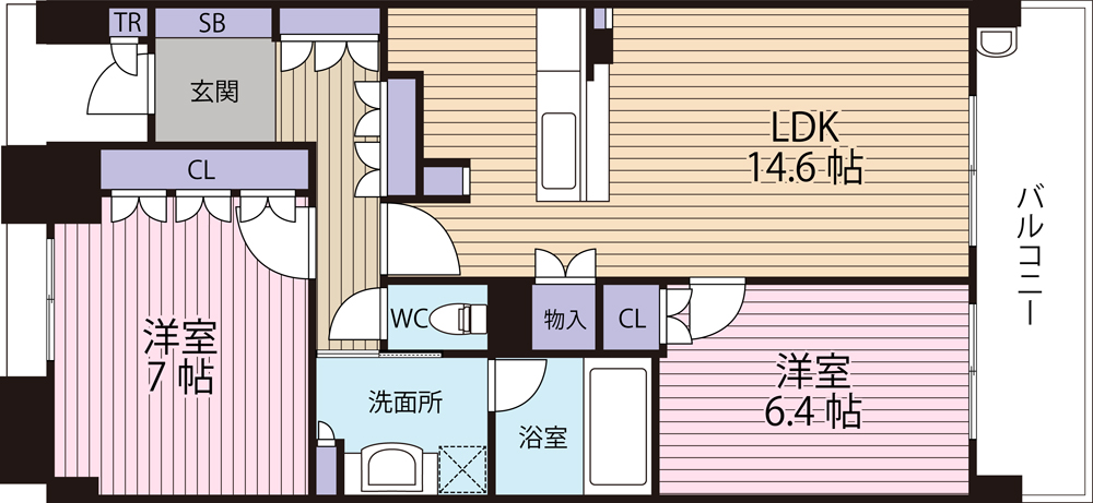洋室7.0畳 洋室6.4畳 LD11.4畳 K3.2畳 |