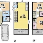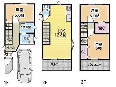LDK12.8畳 2階 洋室5畳 1階 洋室5畳 3階 洋室6畳 3階 |