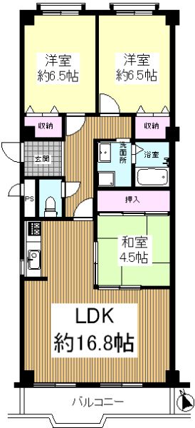 LDK16.8畳 洋室6.5畳 2室 和室4.5畳 |