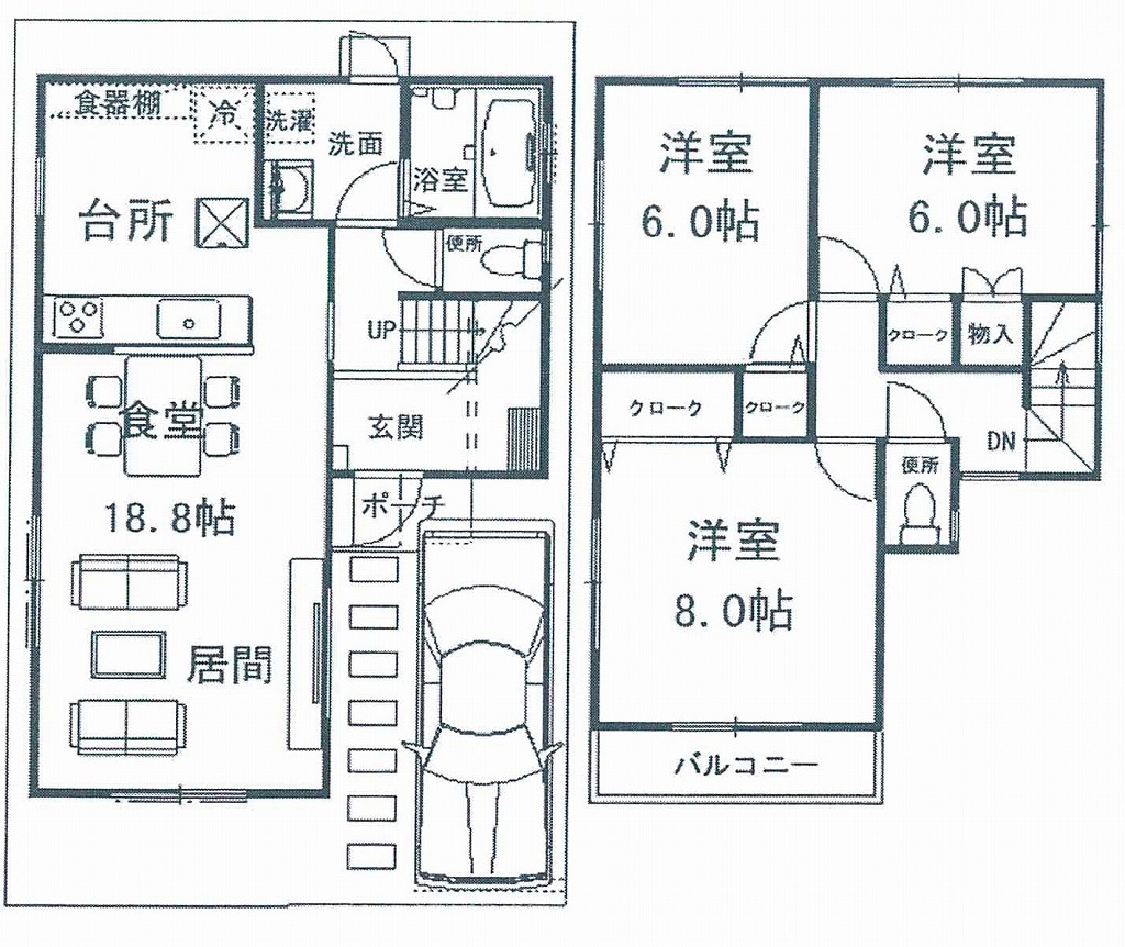 LDK18.8畳 洋室6.0畳 洋室6.0畳 洋室8.0畳 |