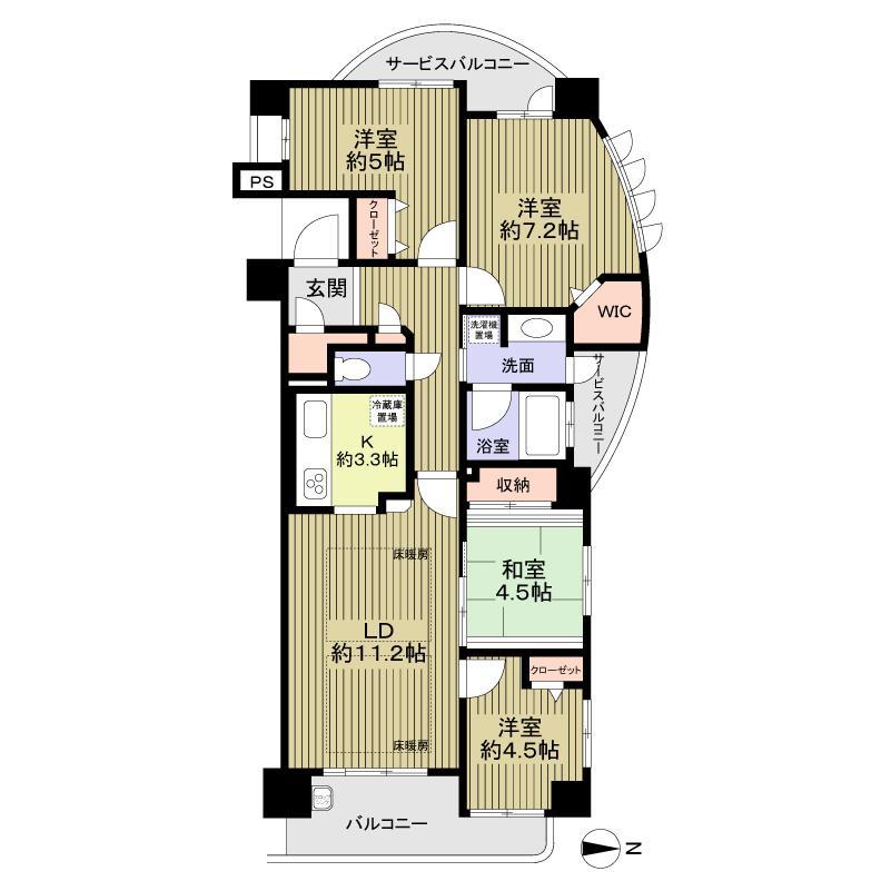 LD11.2畳 K3.3畳 洋室7.2畳 洋室5畳 洋室4.5畳 和室4.5畳 |