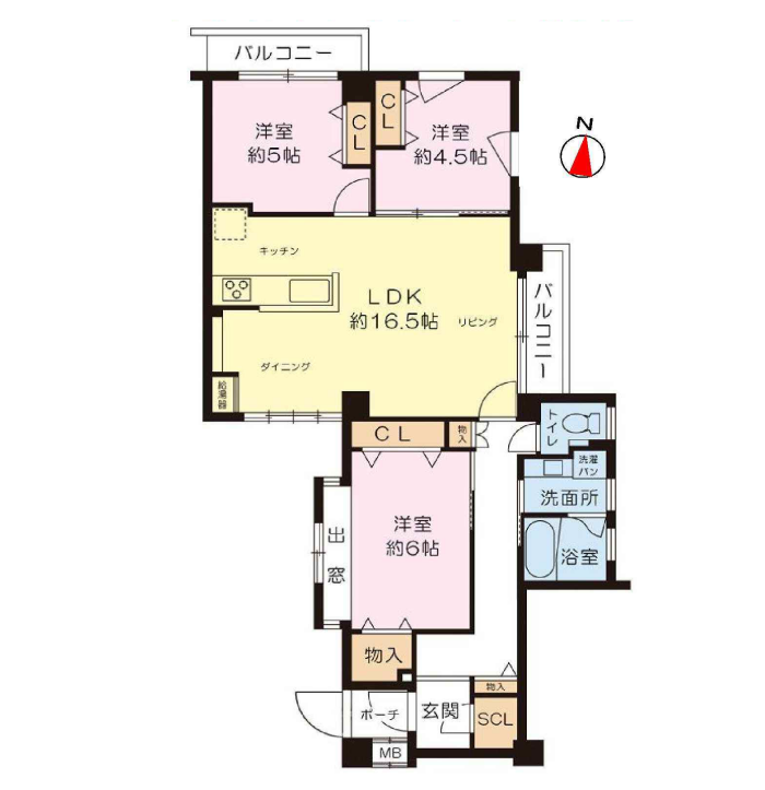 LDK16.5畳 洋室6畳 洋室5畳 洋室4.5畳 |