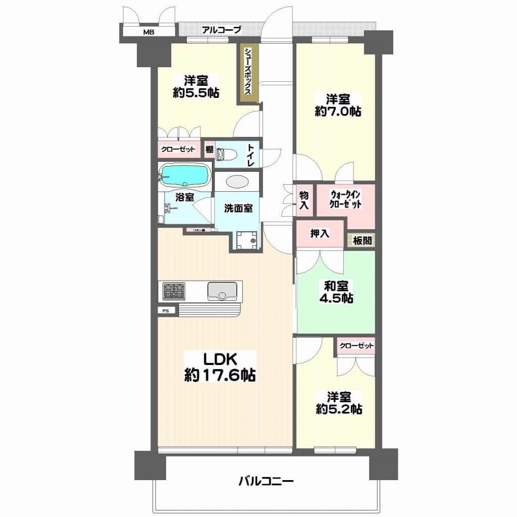 LDK17.6畳 洋室5.2畳 洋室5.5畳 洋室7.0畳 和室4.5畳 S(WIC) |