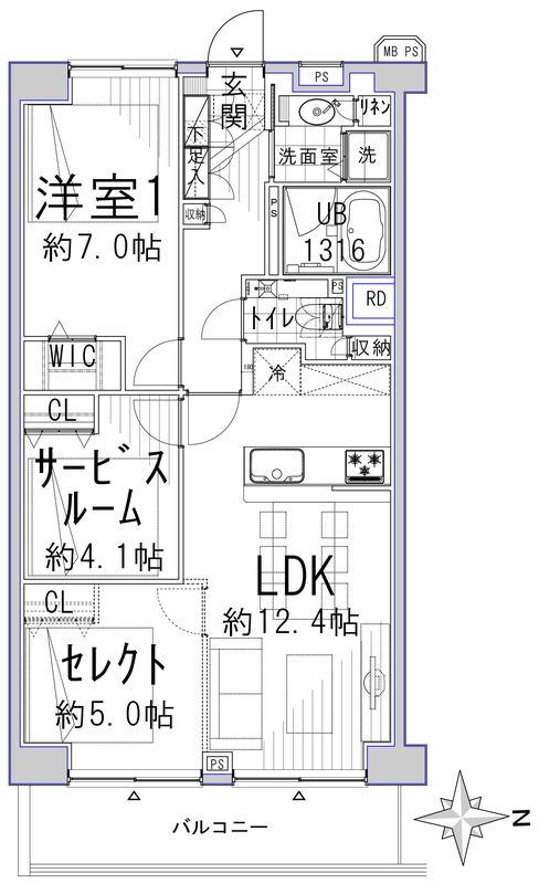 間取内容 LDK12.4畳   洋室7.0畳   S4.1畳   5.0畳