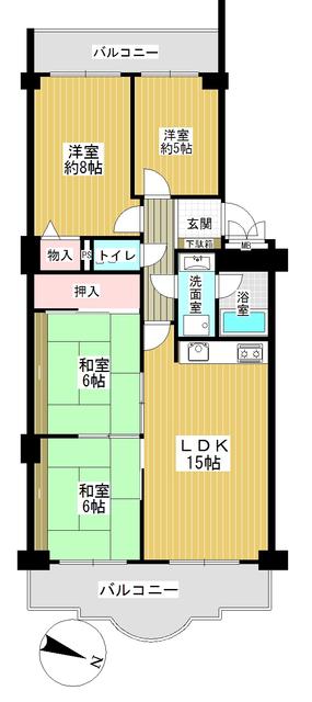 LDK15畳 和室6畳 和室6畳 洋室8畳 洋室5畳 |