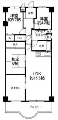 LDK15.6畳 和室6畳 洋室5.7畳 洋室4.2畳 |