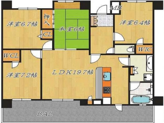 LDK19.7畳 洋室7.2畳 洋室6.7畳 和室6.4畳 和室6畳 |