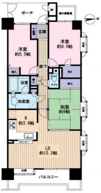LD12.2畳 K3.8畳 和室6畳 洋室5.5畳 洋室6.5畳 |
